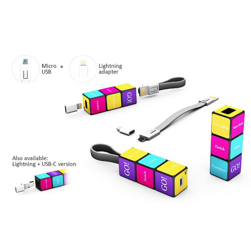 קוביה הונגרית שהיא מחזיק מפתחות וכבל הטענה לנייד